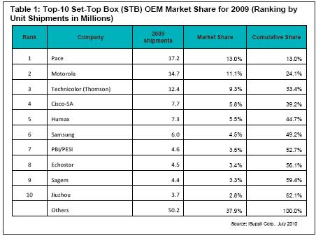 與此同時,2009年市場份額數據顯示,隨著Pace公司完成對飛利浦STB業務的收購,正在成為新的市場份額王者。