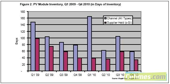 圖2所示為2009年第一季度至2010年第四季度的光伏模組庫存圖表,顯示了主宰該市場的可能動態。