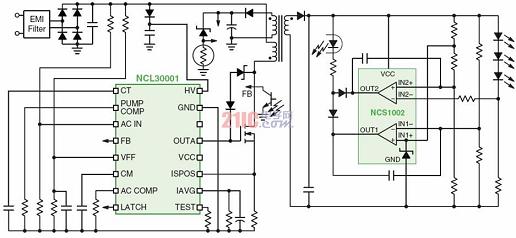測試表明,在90至264Vac輸入電壓條件下,基於NCL30001的LED電源提供高於85%的高能效,功率因數也高於0.9,bingtigongduanluheguoyabaohu。shejirenyuanlveweitiaozhengcijiduankongzhidianluzhongdedianzu,jiukeyitiaojiewenliudianliujiwenyadianya,congerzhichizhongduanchanpindejutiyingyongyaoqiu。lingzhiyitideshi,suiranzhezhongdianyuanshishejizhizaitigongjinmiwenliudegudingdianliu,danyekeyigongzuozaihengdingdianyamoshi,yinweiqidianliuhedianyagenjuNCS1002中集成的緊密穩壓的2.5V參考電壓來穩流和穩壓。