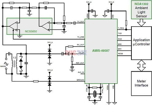 有利的是,設計人員采用安森美半導體的AMIS-49587電力線載波(PLC)調製解調器、PLC線路驅動器NCS5650和諸如NOA1302這樣的環境光傳感器,基於電力線輕易地構建聯網型LED街燈智能控製係統(參見圖4)。其中,安森美半導體的環境光傳感器包含的輸出類型,如NOA1302和NOA1305提供的是數字輸出,而NOA1211為模擬輸出。這些光傳感器的工作電流極低,在100流明光輸出條件下分別僅為58 μA、550 μA和115 μA,因而對係統能效的影響極小。