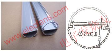 這種半圓柱的表麵積為:2πR*h/2=πR*h。對於T8燈管來說,它的直徑為26mm,所以半徑為13mm。1.2米的T8燈管,其表麵積為:π*1.3+120=490cm2,我們知道LED散熱器的表麵積通常要求60cm2/W。,所以這種半鋁管隻能散8W左右的熱量。而T8型LED日光燈通常輸入功率為20W,假定LED的發光效率隻有20%,那麼有16W的輸入電功率都變成熱量。而現在隻能散去8W的熱量,而還有8W的熱量無法散去,其結果就是使得LED的結溫升高,壽命縮短。