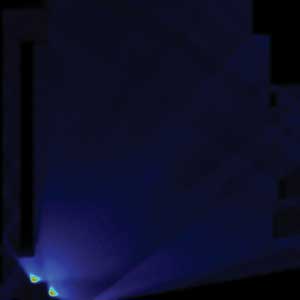 對於圖3中的例子,所用的是兩個側麵發光高亮度LEDqijian,bingshiyongjingguoyouhuadebianyuanguangyuandaoguangtijinxingguangouhe。zhihou,weilequedingxitongzhongdeziranguangpujinxinglejixianguangxuejianmo。jianmowanchenghou,yigejingguodingzhideguangxuetoujingzhenliebeizengjiajinlai,yigaishancongLED器件發出的可以利用的光,並且將光的出射範圍擴展到比LED器件製造商原始設計更廣的地步。