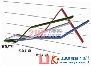 圖2代表了燈具發展的不同光源革命時期,四個方向的大略曲線。將前次光源革命進入到LED照明燈具的線條變化,與之前幾次的照明革命比較後,會發現價格的曲線變化很劇烈,而真正發展的軌跡應該是要指向“未來發展”的位置,而非“現有LED”的價格位。而現有LED燈具“結構設計彈性”的發展又不夠強勁;能源效率部分也還有進步的空間。這也表示目前LED照明燈具的設計與發展,還沒有到達它應該有的位階。