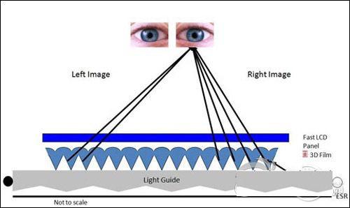 對指向光源(DirectionalBacklight)3D技術投入較大精力的主要是3M公司,指向光源(DirectionalBacklight)3D技術搭配兩組LED,配合快速反應的LCD麵板和驅動方法,讓3D內容以排序(sequential)方式進入觀看者的左右眼互換影像產生視差,進而讓人眼感受到3D三維效果。前不久,3M公司剛剛展示了其研發成功的3D光學膜,該產品的麵試實現了無需佩戴3D眼鏡,就可以在手機,遊戲機及其他手持設備中顯示真正的三維立體影像,極大地增強了基於移動設備的交流和互動。