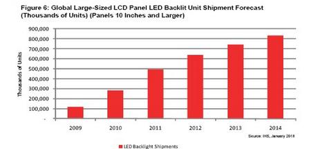 - 2011年67%大尺寸液晶麵板采用LED背光