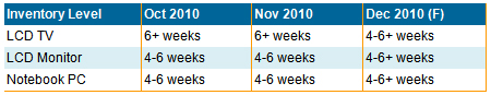 盡管11月份之前液晶顯示器庫存量處於中等水平,但主要液晶顯示品牌商重點投放的中國市場卻銷售緩慢,從而導致了2010年年底庫存量上升。