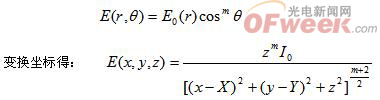 LED的光強分布不是一個理想的餘弦分布,該分布可以表示為: