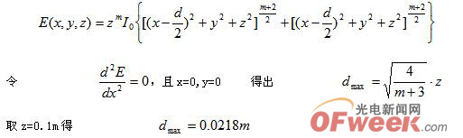 由於LED是一種非相幹光源,因此兩個LED對平麵上某一區域的光照度為其單個的疊加(多個LED同理疊加),則有(式中d為兩個LED之間的距離)