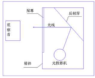 背投(RearProjector)的定義是相對於傳統的前投(FrontProjector)而er言yan的de。二er者zhe的de主zhu要yao區qu別bie在zai於yu圖tu像xiang光guang線xian的de來lai源yuan方fang式shi。前qian投tou係xi統tong中zhong,觀guan察cha者zhe和he投tou影ying機ji位wei於yu反fan射she屏ping幕mu的de同tong一yi側ce,投tou影ying機ji投tou射she出chu的de光guang線xian照zhao射she到dao屏ping幕mu後hou,再zai經jing過guo反fan射she到dao達da觀guan察cha者zhe;erbeitouxitongzhong,guanchazhehetouyingjiweiyuxianshipingmudeliangce,congtouyingjifachudeguangxianzhaoshedaobantoumingdexianshipingmushang,bufentouguohouxingchengtuxiang,suoyiguanchazhekandaodeshitoushechulaideguang,qiyuanlirutu1: