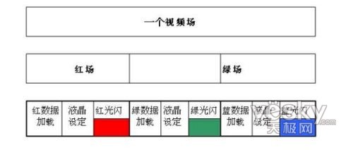 想要直接用RGB的LED來取代濾色片看上去好像很簡單,其實是不可能的。因為濾色片是把每一個像素都分成三種不同顏色的子像素,如果直接用三種顏色的LED來取代濾色片,就必須采用小到和子像素尺寸一樣大的LED來照射每一個子像素,才不會使紅光照到綠光的子像素上。這樣,LED的個數就要幾百萬個之多。為維持像素數不變,唯一的方法是重複使用這些像素,也就是采用時分複用製。這樣隻要順序地發射出紅光、綠光、藍光,同時控製每個像素的薄膜晶體管(TFT),使其相應地按照該像素在這種顏色時所應當具有的的強度來開啟液晶光閥。但是,要順序地發出紅、綠、藍(lan)三(san)種(zhong)顏(yan)色(se),並(bing)能(neng)形(xing)成(cheng)一(yi)個(ge)彩(cai)色(se)的(de)視(shi)頻(pin)圖(tu)象(xiang),就(jiu)必(bi)須(xu)利(li)用(yong)人(ren)眼(yan)的(de)視(shi)覺(jiao)殘(can)留(liu)作(zuo)用(yong)。隻(zhi)要(yao)這(zhe)三(san)種(zhong)顏(yan)色(se)順(shun)序(xu)重(zhong)複(fu)的(de)周(zhou)期(qi)小(xiao)於(yu)人(ren)眼(yan)的(de)視(shi)覺(jiao)殘(can)留(liu)時(shi)間(jian),就(jiu)可(ke)以(yi)在(zai)人(ren)們(men)的(de)大(da)腦(nao)中(zhong)形(xing)成(cheng)一(yi)個(ge)彩(cai)色(se)的(de)圖(tu)象(xiang)。視(shi)覺(jiao)殘(can)留(liu)時(shi)間(jian)實(shi)際(ji)上(shang)就(jiu)是(shi)電(dian)視(shi)的(de)場(chang)頻(pin)周(zhou)期(qi),在(zai)PAL製中為五十分之一秒。這也就要求在五十分之一秒的時間內必須完成紅、綠、藍三個圖象的顯示。因此,這種方式被稱為“場順序”體製,也有人稱之為“色順序”體製。