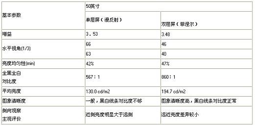 A,附光學背投和散射背投的參數對比:B,附正投和背投的效果圖