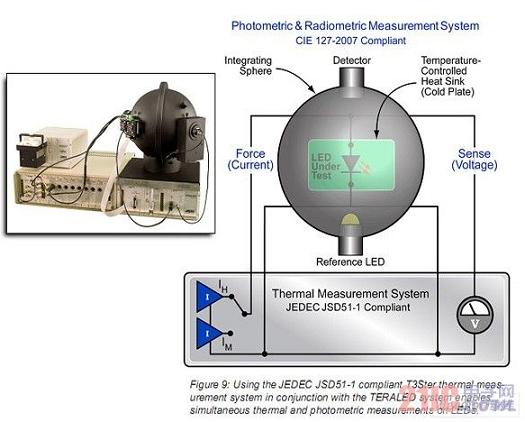 當TERALED以單機模式使用時,它可以完成光度測量。當結合T3Ster係統時可以進行熱和光度測量。圖9是TERALED和T3Ster係統一起使用的簡圖。