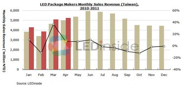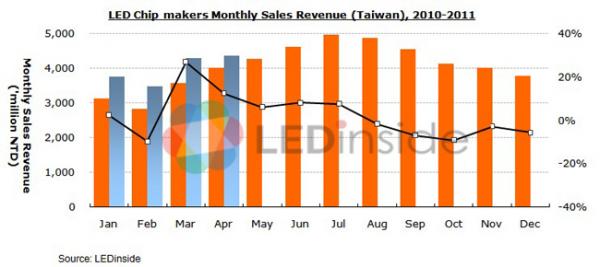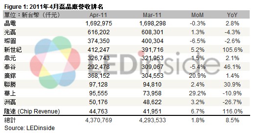 - 011年4月台灣上市上櫃LED廠商營收總額約96.2億元