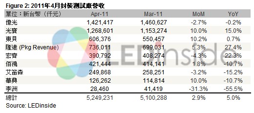 資料來源: LEDinside整理(2011年5月)