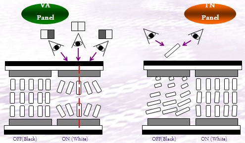VA麵板與TN麵板可視角度對比
