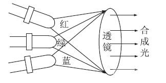 通過控製電路對三基色發光LED 的亮度進行調節,其通過透鏡後的合成光的顏色和亮度均將可調。
