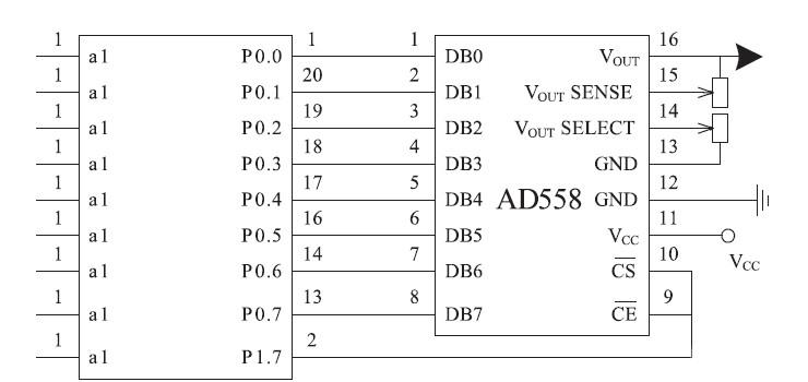 圖3 中AD558 是D /A 轉換芯片,能將數字量轉換為模擬量。單片機通過P0 口與AD558 的DB0 -DB7 連接,進行並行數據傳輸,以此控製AD558 輸出電壓的高低,輸出電壓通過功率放大控製LED 單色發光的強度。由於AD558 是8 位的D /A 轉換芯片,因此通過三路D /A 分別控製三基色時,其可將三基色中的紅、綠、藍分別分為28 = 256 份輸出,若將三基色任意組合即可最大形成2563 = 16777216 顏色和亮度的組合分辨率,通過軟件數據的設定可根據實際需要設置最大限度內任意所需要的分辨率值。