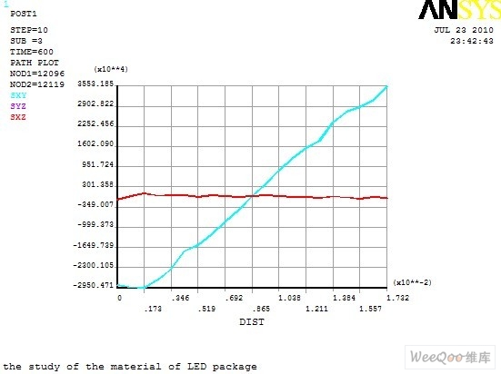 圖10 顯示了路徑上剪應力的變化情況,SYZ 與SXZ 幾乎重合,且剪應力很小,變化平緩;SXY 變化非常劇烈,說明在Y fangxiangshang,jijibanyurechenzhijianyoujiaodadejianyingli,qieyouzhongjianxiangliangduanzengda,biaomingjianyinglizhuyaojizhongzaibianjiaoquyu。zheshiyouyujibanyurechenweiliangzhongbutongdecailiao,cailiaozhijianderepengzhangxishujidanxingmoliangbutongerchanshengjiaodajianyingli。