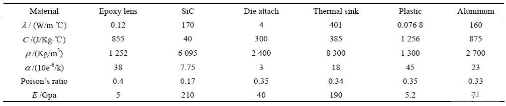 表1 LED 封裝材料的熱力學參數