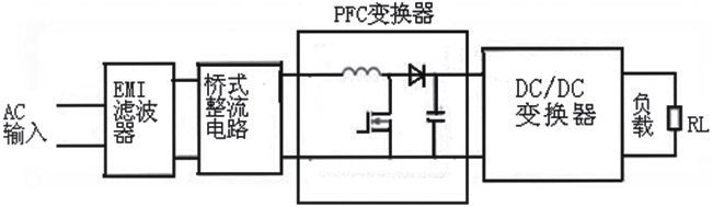 本文所設計電路主要分為EMI模塊、PFC變換器和DC/DC變換器三個部分,其中EMI模塊采用雙環濾波,達到了較理想的效果;采用飛兆FAN6961芯片作為PFC變換器的控製芯片,使用Boost變換,使功率因數得到提高;DC/DC變換器采用LLC諧振,以FSFR2100為控製器件,達到了較高的效率,其基本結構如圖1所示。
