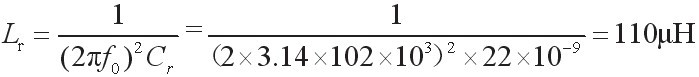 如圖7振蕩器的典型電壓增益曲線所示,選取諧振頻率為102kHz,並且在上一步中已經得出Cr=22nF,將這兩個參數代入式(11)就可以得到:
