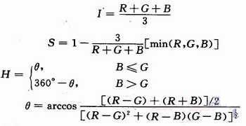 RGB模型麵向電路,而HSI模型與人的顏色感知一一對應,所以需要通過RGB模型完成到HSI模型的轉換: