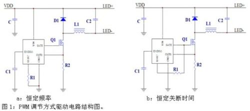 按照PWM調節方式,可以分成恒定頻率和恒定關斷時間兩類(圖1)。