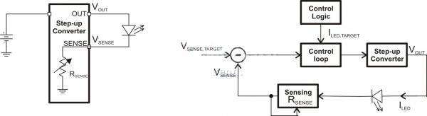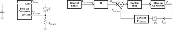將閃光燈LED 與一個電流檢測電阻串聯,然後通過一個升壓轉換器來驅動,這是一種簡單的方法。圖1 描述了這種方法。