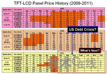 事實上,2011年2季度,全球四大液晶麵板企業已出現虧損。三星電子12.8億美元,LG顯示2.9億美元,友達光電24億美元,奇美29億美元。中國麵板企業恐怕也將步起後塵。