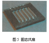 圖5顯示了一種固態風扇,這是Dan Schlitz和Vishal Singhal經過六年的不斷積累所發明的成果。他們曾經是美國普渡大學研究人員,現在就職於Thorrnweijishugongsi。gaiyanjiubiaomingtajuyouchaobofengshandegongnengdanmeiyourenheyundongbujian。qiyuanlishizaikongqizhongweidianjikaodehenjindeshihou,kongqibeidianli,youyuzhexielizideyundongerchanshengdongneng,congertuidongkongqichanshengchuifengxiaoguo。tamenhaitidao,xiwangjianglaigaijishuzaichengbenshangkeyijiejinchuantongdelengquexitong。