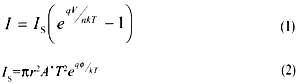 式中,is是飽和電流,n是理想因子,r是結半徑,a*是理查德遜常數,φ是金屬半導體接觸的勢壘高度。