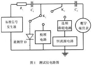測試儀電路圖見圖1,它由以下幾部分組成: