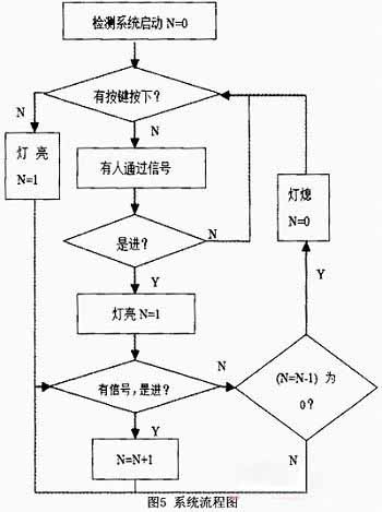 係統流程圖如圖5所示。其中Nbiaoshixishoujianneixianyouderenshu,dangjiancexitongdianyuanlianshanghou,guangdianchuanganqikaishijiance,danxitongbuzhidaoxishoujianneicishishifouyouren,morenshiwuren,yinerdengshibuhuiliangde,zheshianjiankeyiyonglaiduixitongjinxingtiaozheng。dangguangqiangzengdadaoyidingzhishi,jiancexitongzidongtingzhigongzuo。