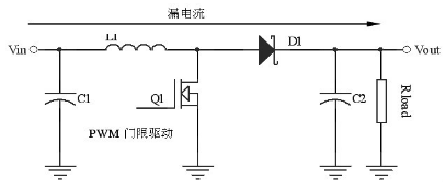 (1)電池使用壽命短:圖2 中,即使關斷升壓轉換器主開關,Vin 與Vout 之間仍會形成一條電流泄露路徑,如果在輸出端接有任何負載,其中泄露電流Ileak 接近於Vin/Rload,那麼漏電流的存在使的蓄電池一直處於工作狀態,這樣將會縮短電池的使用壽命。
