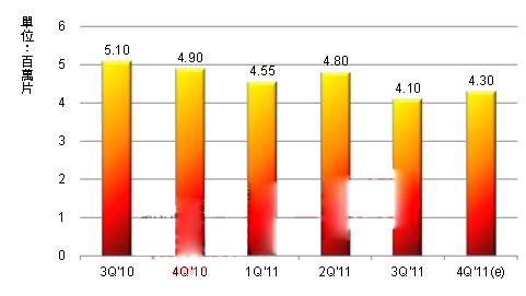 3Q’10至4Q’11全球PDP麵板模塊出貨量變化