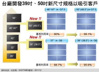 - 開發新尺寸麵板成2012年麵板商提升平均單價搶占市場的重要方向