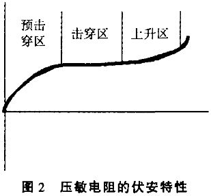 普通壓敏電阻器的伏安特性見圖3 ,它並聯在電子鎮流器的電源輸入端,熔斷保險絲的後端(圖1) ,線路的保護方式主要有相線與零線的防護,相線與地的防護,零線與地的防護。其外形結構見圖4。