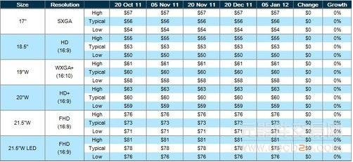 DisplaySearch公布的液晶麵板報價