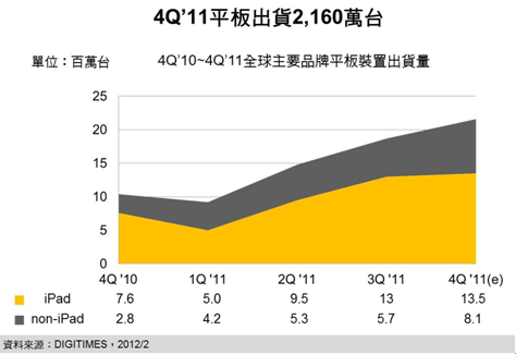 - 2011年全球品牌Tablet出貨達6,328萬台