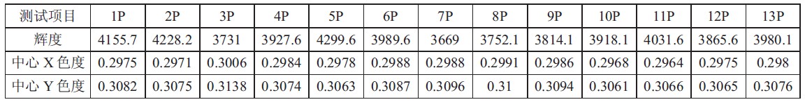 本文所設計的筆記本電腦用LED 背光組件光源采用白光LED,組裝後的LED 背光源利用BM- 7 進行13 點測試,5 點平均輝度為4,019nit ,亮度均齊性為85.33% ,色彩還原性達到95% @CIE 1976.背光源整體功率為3.2W,其中LED 功耗為2.69W.背光係統的驅動電路簡單,電流一致性良好。表1 所示為背光源的光學測試數據。