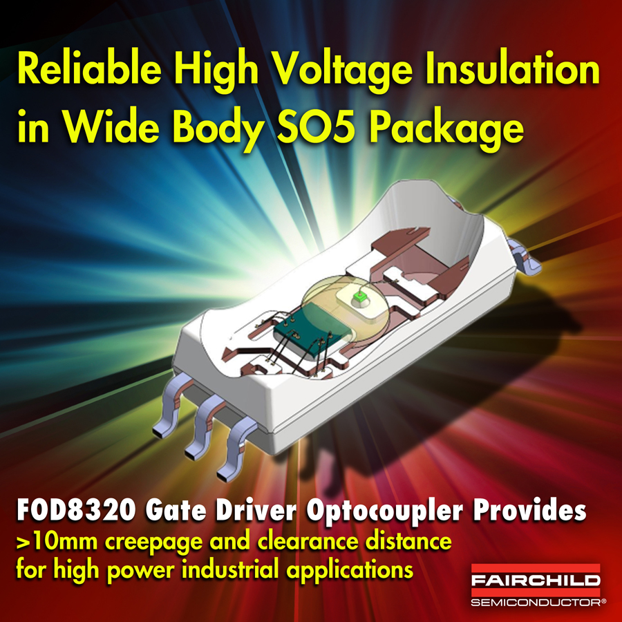 飛兆半導體新型柵極驅動光耦合器為設計人員帶來高絕緣電壓和高抗噪性能