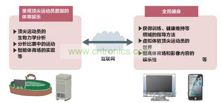 在頂尖運動員的體育表演和訓練中,電子技術的采用也在全麵展開。這種措施與麵向普通消費者的服務在今後將以互聯網的Web服務等為核心,逐漸趨於融合。