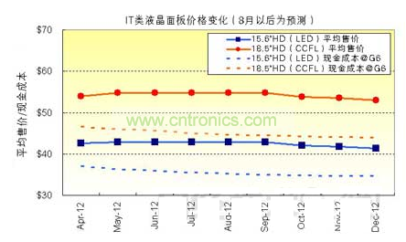 圖1:IT類液晶麵板價格變化(8月以後為預測)