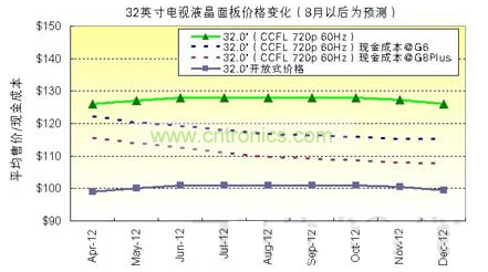 圖2:32英寸電視液晶麵板價格變化(8月以後為預測)