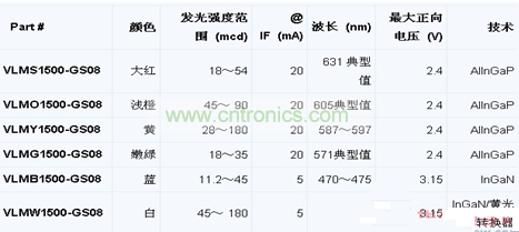 VLMx1500-GS08係列中的藍色和白色LED使用高效InGaN技術,大紅、淺橙、黃色和嫩綠色器件使用最先進的AllnGaP技術,使光輸出提高了3倍。憑借高亮度和小尺寸,VLMx1500-GS08係列LED成為音響和視頻設備,辦公設備,液晶屏、開關和標識,室內外照明,以及戶內和戶外消息牌中為指示燈和背光提供可靠性能的絕佳之選。