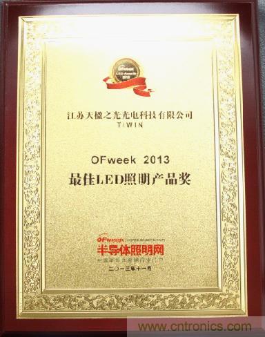 天楹之光榮獲OFweek•2013最佳LED照明產品獎