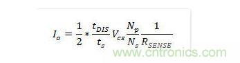 在二極管導通時間期間,輸出電壓與二極管正向壓降之和反射到輔助繞組為(VO+VF)*Na/Ns。通過在二極管導通時間結束時對繞組電壓進行采樣,可以獲得輸出電壓信息。輸出電流(Io)可使用MOSFET的峰值漏極電流(Ipk)以及電感電流的放電時間(tDIS)來估算,因為在穩態下,輸出電流(Io)與二極管電流(ID)的平均值相同。輸出電流估算通過峰值檢測電路來確定漏極電流的峰值,並利用電感放電時間和開關周期(ts)來計算輸出電流。將此輸出信息與內部精確參考電壓進行比較,產生誤差電壓(VCOMI),它可以確定MOSFET的占空比。使用Fairchild的創新TRUECURRENT技術,可精確控製恒定輸出電流。