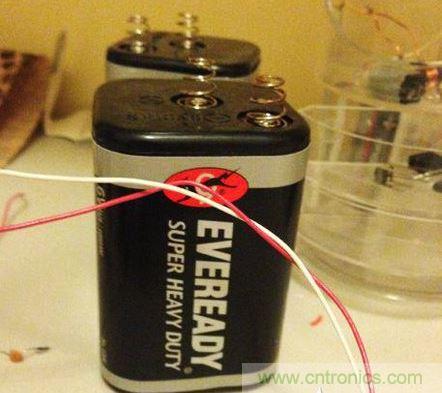 我第一次設計馬克思發生器的時候,我用的是9V電池為555定時信號發生器供電。然而,電路經過修改後,定時器可直接由手提電池供電,這個方案更實用。
