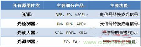 圖表1 光有源器件主要分類及功能