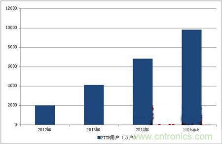 圖表4 2012-2015年中國FTTH用戶增長情況(單位:萬戶)